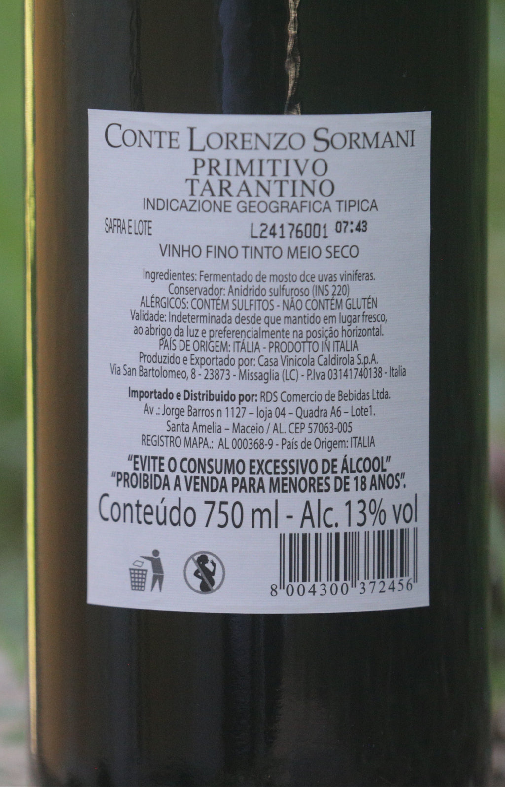 Conte Lorenzo Sormani • Primitivo Tarantino I.G.T. • Itália
